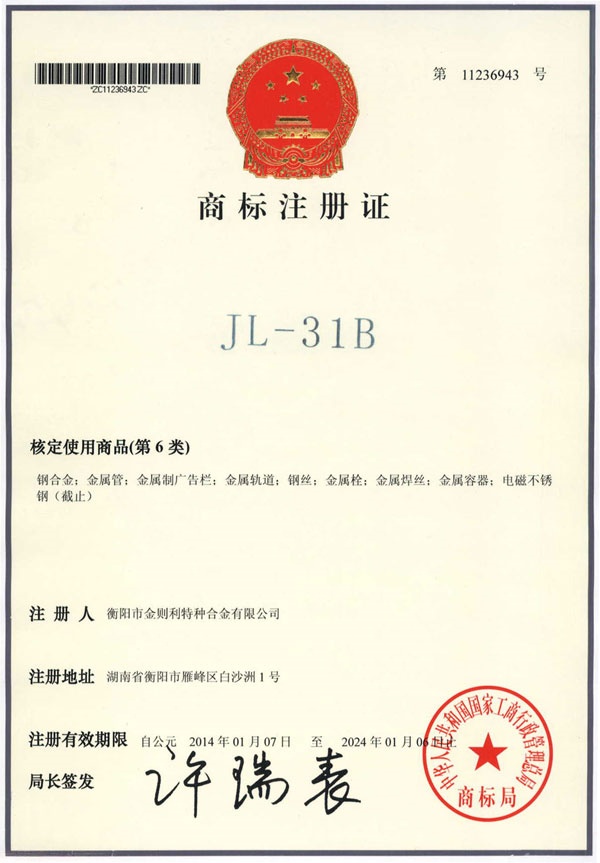 衡陽(yáng)市金則利特種合金股份有限公司成立于一九九九年十二月,注冊(cè)資本人民幣兩千兩百萬(wàn)元。注冊(cè)地址:衡陽(yáng)市雁峰區(qū)白沙洲工業(yè)園長(zhǎng)塘路2號(hào)。公司主營(yíng)耐蝕軟磁合金,為湖南省高新技術(shù)企業(yè)。公司自成立以來(lái),即致力于耐蝕軟磁合金的研發(fā)。 研制出的JL-31(00Cr13si2Pb)、JL-31B(00Cr13si2)、JL-31BS(00Cr13Si2S)、JL-37B(0Cr17Si2)、JL-37(0Cr17···