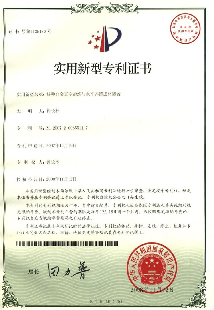 • 發(fā)明專利證書